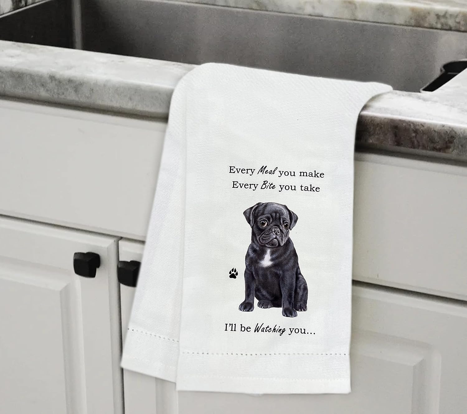 Black Pug Kitchen Towel - Soft Highly Absorbent - Black Pug Gifts - Dish&Tea Towels - Reusable - Quick Drying - 100% Natural Cotton