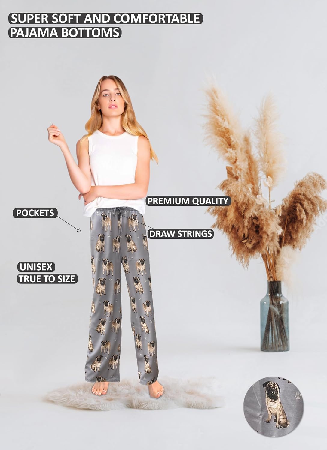 Pug Dog Lovers Unisex Lightweight Cotton Blend Pajama Bottoms – Soft and Comfortable