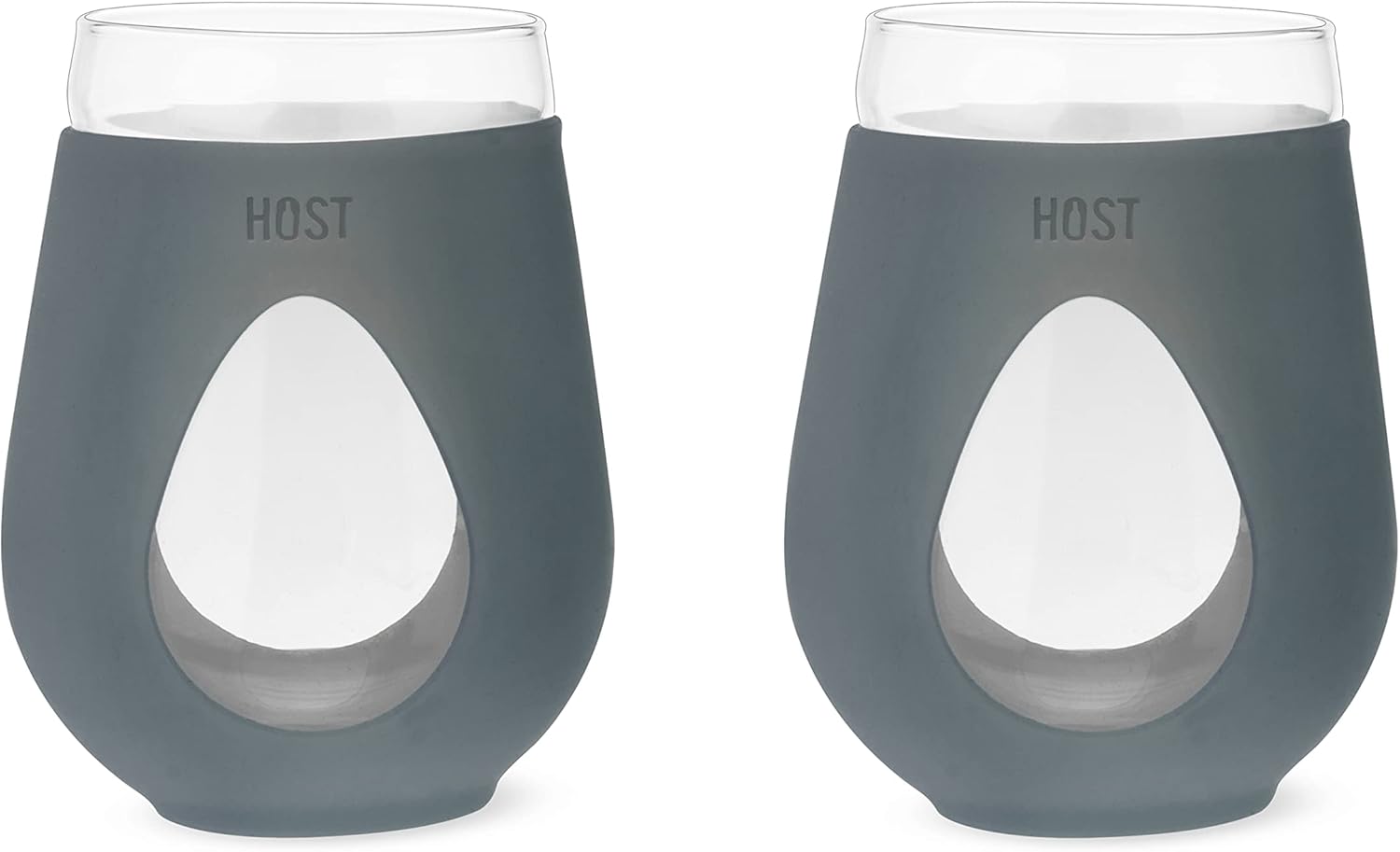 Wrapped in a smooth easy-grip silicone the Host wine glasses provide base stability in a trendy color palette