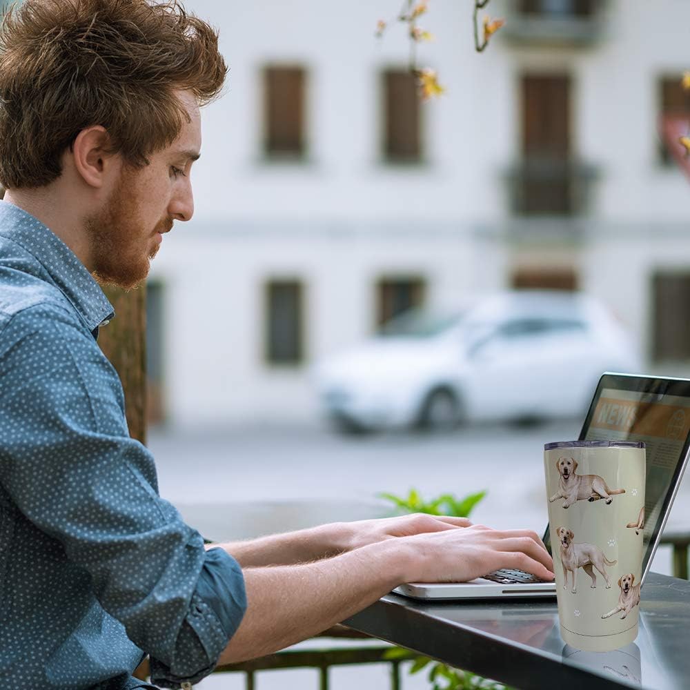 Yellow Labrador Dog Lovers 20 Oz . Stainless Steel, Vacuum Insulated Tumbler with Spill Proof Lid - 3D Print - Insulated Travel mug for Hot or Cold Drinks (Labrador Yellow Tumbler)