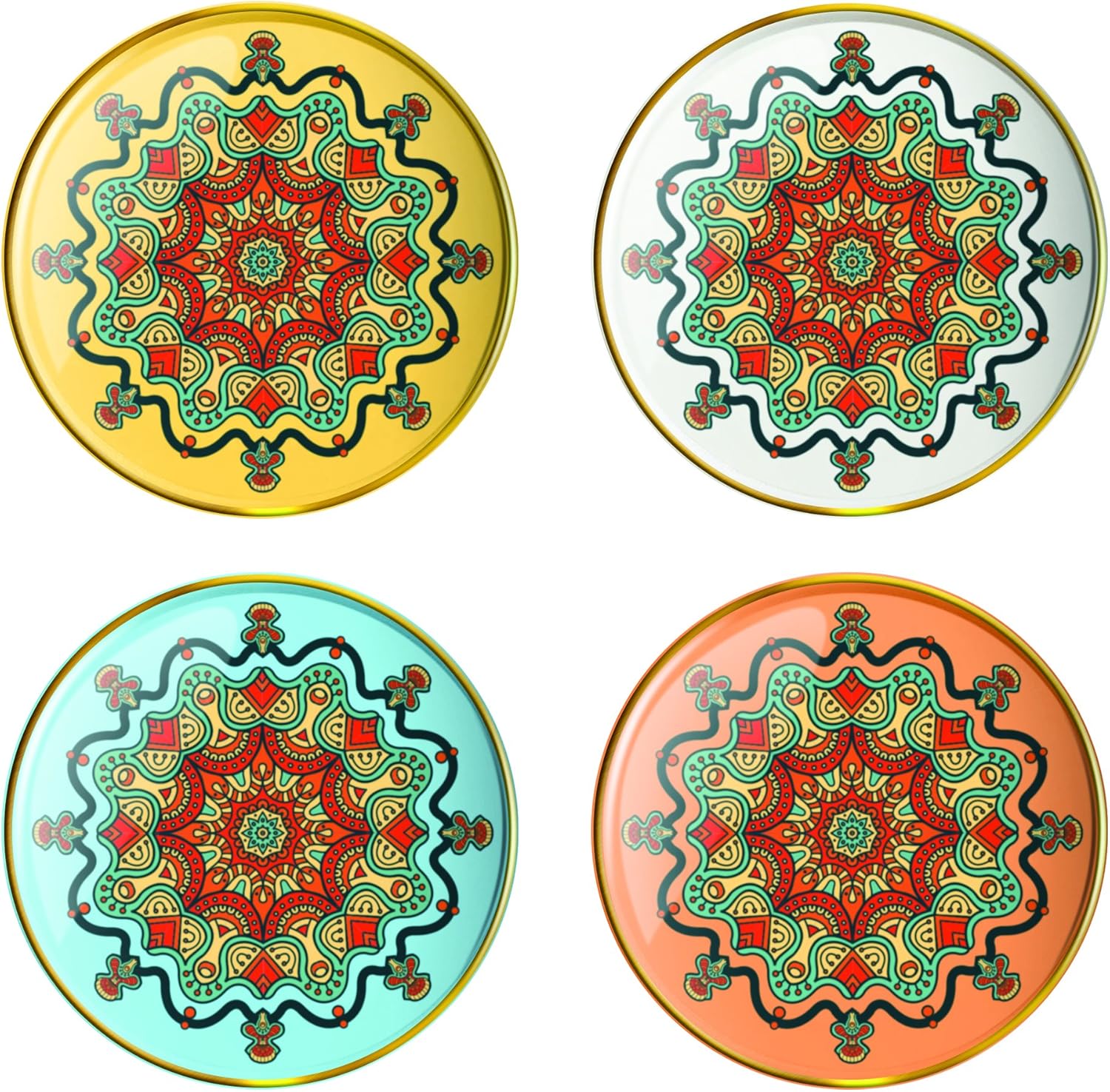 4 gorgeous trinket dishes in 4 colorful Mandala designs